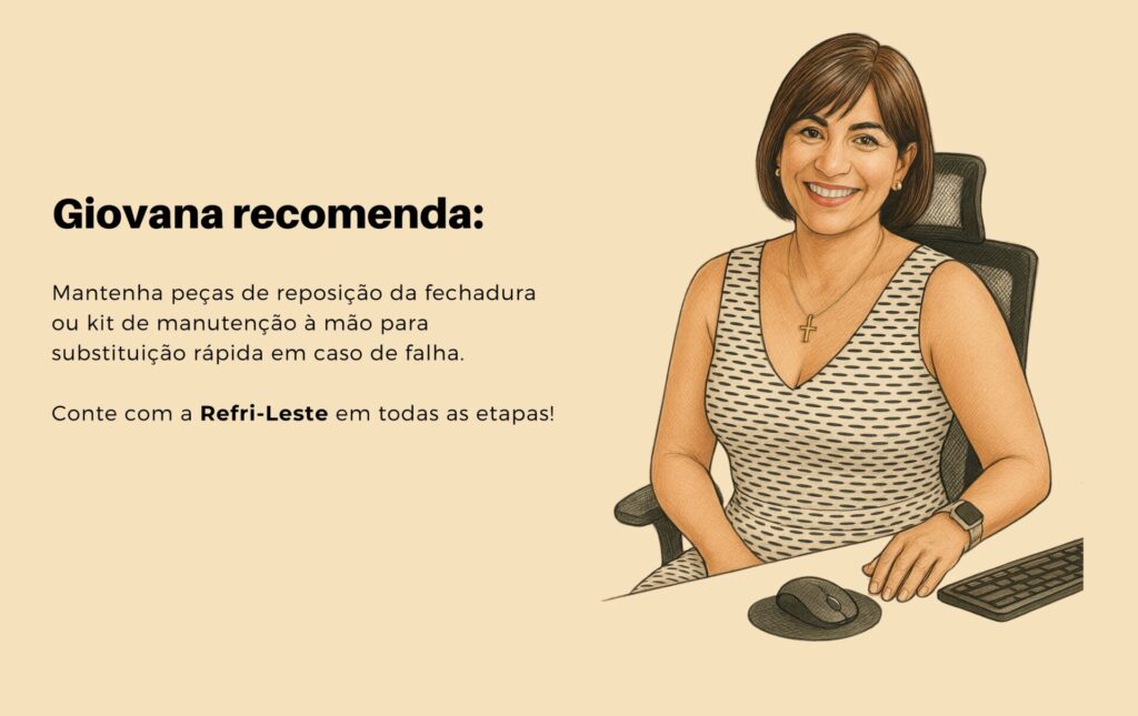 Inclua a fechadura no plano de manutenção da câmara fria, com periodicidade definida, responsabilidades e registro de inspeções.